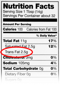 Per il momento, la legge in USA prescrive che la loro presenza venga indicata in etichetta : starà al consumatore scegliere determinati prodotti per eliminare i grassi trans dalla propria dieta.