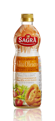 In realtà si tratta di un olio che da tempo è utilizzato da molti cuochi e dai professionisti della ristorazione collettiva per le sue caratteristiche. Rispetto all’olio di girasole “comune”, l’alto oleico durante la cottura ha più stabilità grazie alla particolare composizione chimica. È molto resistente e stabile alle alte temperature e raggiunge un punto di fumo (la soglia termica a cui l’olio comincia a degradarsi) di 225°C rispetto ai 210°C dell’olio di girasole comune.