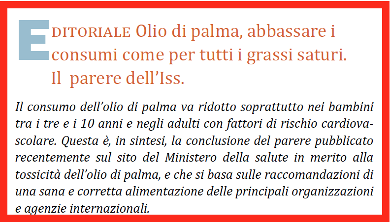 Caro direttore, per completezza di informazione diversi altri media hanno autonomamente condotto una campagna giornalistica per informare i lettori della pericolosità per la salute e per gli equilibri della natura dell’olio di palma e delle sue piantagioni. Cito solo il mensile “Pizza e Pasta italiana” che con articoli del suo direttore e soprattutto della dott.ssa Marisa Cammarano, biologa nutrizionista e collaboratrice fissa del mensile, hanno dettagliatamente informato i propri lettori – ristoratori, cuochi, pizzaioli in Italia e nel mondo – invitandoli ad abolire dalle loro cucine l’olio di palma ottenendo ampi consensi. Questo per dire che le voci impegnate a far eliminare da ogni tipo di alimento – dai biscotti alle fritture – l’olio di palma sono state numerose.