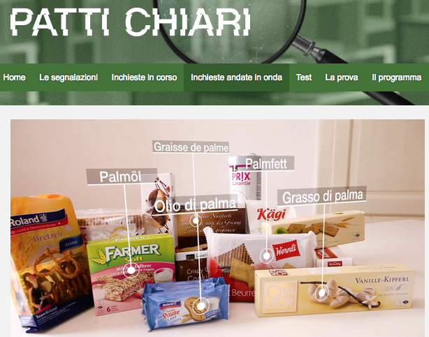 Dopo aver difeso strenuamente l’olio di palma, la maggior parte delle aziende alimentari lo stanno sostituendo con altri grassi che hanno un contenuto di saturi nettamente inferiore, perchè? È questa la domanda che la trasmissione svizzera Patti Chiari ha posto ad Aidepi, l’associazione di produttori italiani che riunisce le aziende che realizzano prodotti da forno e a Il Fatto Alimentare, nella puntata andata in onda sulla tv ticinese il 16 dicembre 2016.
