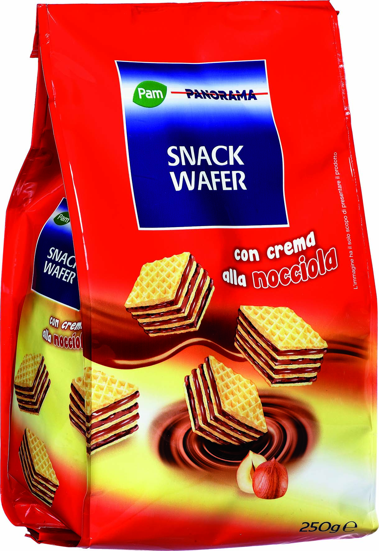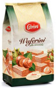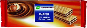 Cabrioni, Waferini alla nocciola. Ingredienti: Olio vegetale di cocco, farina di frumento, zucchero, siero di latte in polvere, nocciole in pasta (11% min. nella crema), destrosio, sciroppo di glucosio disidratato, cacao, fecola di patate, amido di mais, latte scremato in polvere, emulsionante: lecitina di soia, sale, agente lievitante: bicarbonato di sodio. |