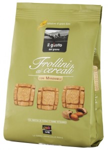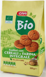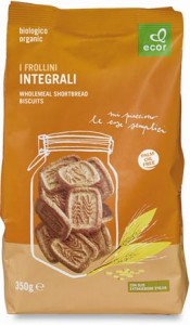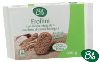 Simply Bio, Frollini ai cereali e farina integrale. Ingredienti: farina di cereali (frumento, farro,orzo, riso, avena) 36%, farina di frumento integrale 25%, zucchero di canna, burro, olio di girasole, miele, estratto di malto d’orzo, agenti lievitanti, sale, aromi naturali. Biologico, può contenere tracce di latte, uova, nocciole e altra frutta a guscio. |