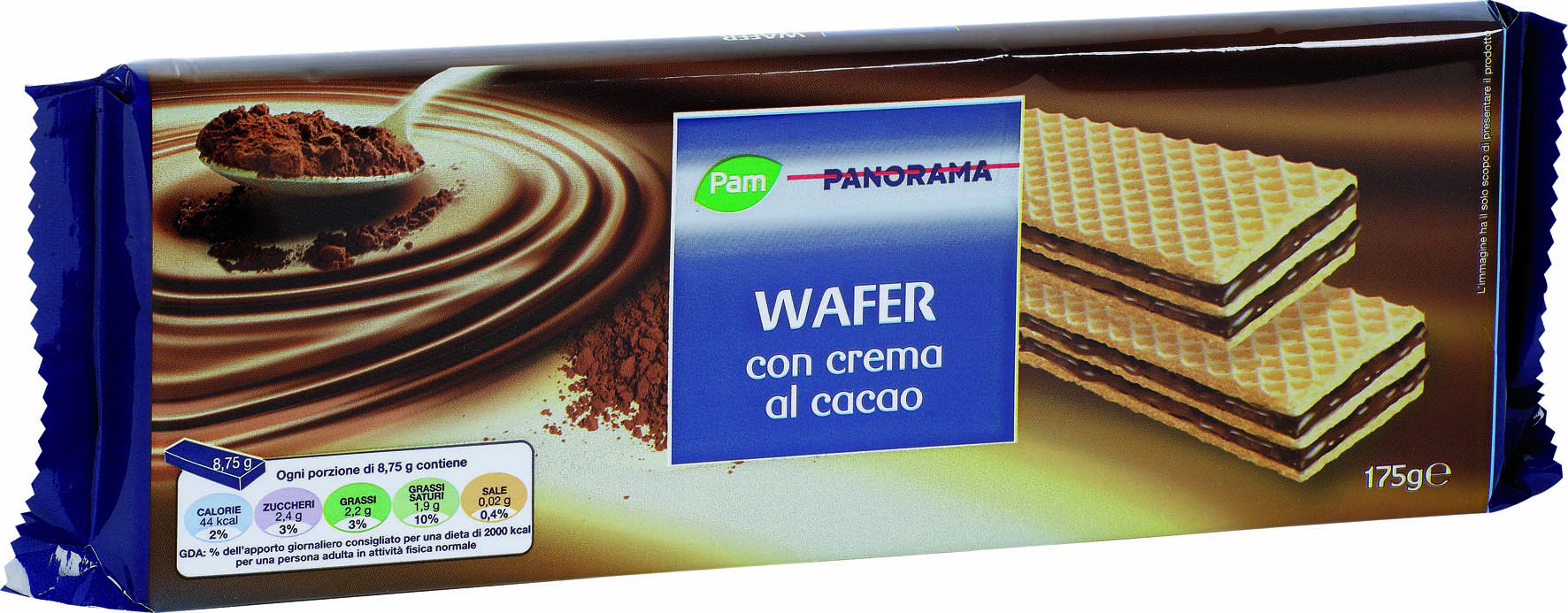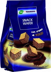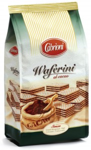 Cabrioni, Waferini al cacao. Ingredienti: Olio vegetale di cocco, farina di frumento, zucchero, siero di latte in polvere, cacao (11% min. nella crema), destrosio, sciroppo di glucosio disidratato, fecola di patate, amido di mais, latte scremato in polvere, emulsionante: lecitina di soia, sale, agente lievitante: bicarbonato di sodio. Può contenere tracce di nocciola. |
