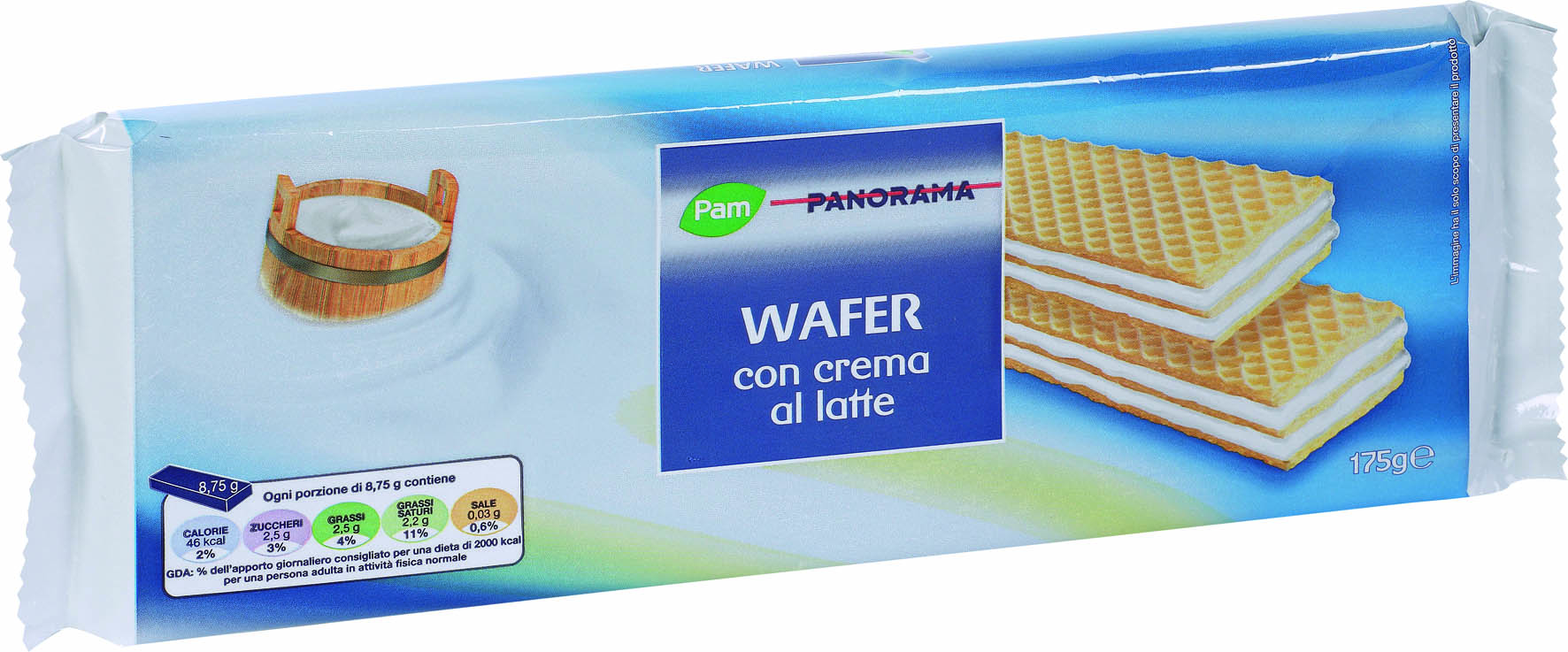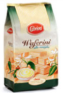 Cabrioni, Waferini alla vaniglia. Ingredienti: Olio vegetale di cocco, farina di frumento, siero di latte in polvere, sciroppo di glucosio disidratato, destrosio, zucchero, fecola di patate, amido di mais, latte scremato in polvere, emulsionante: lecitina di soia, sale, agente lievitante: bicarbonato di sodio, vanillina (0,03% min. nella crema). Può contenere tracce di nocciola. |