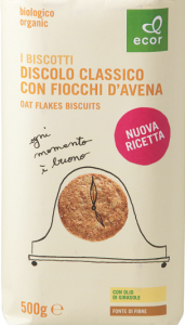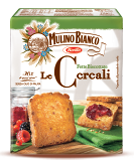 Corsini, Cereali. Ingredienti: fiocchi d’avena 32%, farina integrale di frumento 31% (farina di grano tenero, crusca di grano tenero), zucchero, burro, olio di girasole, sciroppo di glucosio, sale, agente lievitante: carbonato acido di sodio – carbonato acido di ammonio, emulsionante: lecitina di soia, aromi naturali. |