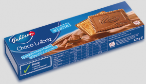 Bahlsen, Choco Leibniz biscotti con cioccolato al latte. Ingredienti: zucchero, farina di frumento, burro di cacao, pasta di cacao, latte scremato in polvere, burro anidro, sciroppo di glucosio, lattosio, emulsionante: lecitine (di soia), agenti lievitanti: bicarbonato di sodio e difosfato disodico, latte intero in polvere, sale, correttore d’acidità: acido citrico, aromi, tuorlo d’uovo in polvere. |