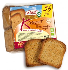 Sapori e Piaceri: Fette biscottate integrali con grano Kamut Khorasan. Ingredienti: farina integrale di grano khorasan *KAMUT(90%), olio vegetale (*girasole), lievito, sale, agente di trattamento della farina: acido ascorbico. (*ingredienti biologici) |