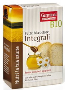 Spighe & Spighe, Fette biscottate con germe di grano. Ingredienti: *farina di frumento, *olio di semi di girasole (3,8%), lievito, *zucchero, *germe di grano (1,3%), sale, *glutine di frumento, agente di trattamento della farina: acido ascorbico. (*) Ingrediente biologico |