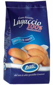 Preti: biscotto Lagaccio tradizionale. Ingredienti: farina di grano tenero tipo 00, lievito naturale, zucchero, burro, farina di malto, aromi. |