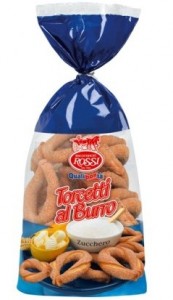 Rossi Biscottificio: Torcetti al burro. Ingredienti: farina di frumento, burro 20%, zucchero, stabilizzante E422, lievito di birra, sale marino, aromi. |