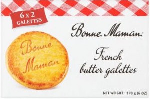Bonne Maman, Gallette al burro fresco. Ingredienti: Farina di grano tenero, Burro fresco 31%, Zucchero, Uova fresche, Latte scremato in polvere, Sale, Agente lievitante in polvere (bicarbonato e pirofosfato di sodio), Possibilità di tracce di sesamo, di soia e di frutta con guscio |