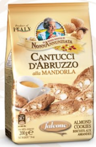 Viaggiator Goloso (marchio supermercati Unes), Cantuccini toscani alle Mandorle. Ingredienti: Farina di frumento (grano tenero tipo”0″), zucchero, mandorle 21%, uova, tuorlo d’uova, burro, latte fresco, miele, agente lievitante: carbonato acido di ammonio, sale, aromi naturali. |