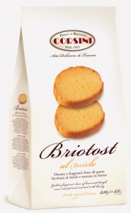 Corsini: Briotost al miele. Ingredienti: Farina di frumento (grano tenero tipo “0”), zucchero, uova, burro, lievito naturale, latte, miele 3%, tuorlo d’uovo, sale, aromi naturali. Prodotto in uno stabilimento che lavora anche frutta secca a guscio. |