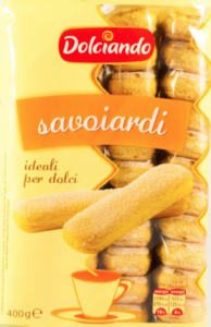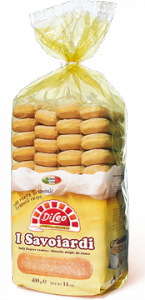 Di Leo, Savoiardi. Ingredienti: Farina di frumento, zucchero, uova fresche 26%, fecola di patate, sciroppo di glucosio, agenti lievitanti (carbonato acido di ammonio, carbonato acido di sodio), aromi. |