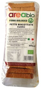 Spighe & Spighe, Fette biscottate di farro. Ingredienti: *farina integrale di farro (88%), lievito, *glutine di frumento, *olio di semi di girasole (3,3%), sale, agente di trattamento della farina: acido ascorbico. (*) Ingrediente biologico |