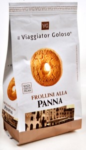 Viaggiator Goloso (marchio supermercati Unes), Frollini alla Panna. Ingredienti: Farina di frumento (grano tenero tipo”0″), zucchero, burro, uova, amido di mais, panna 4%, sciroppo di glucosio, estratto di malto d’orzo, agenti lievitanti: difosfato di sodico-carbonato acido di sodio, sale, emulsionante: lecitina di soia, aromi naturali |