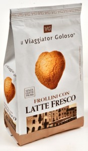 Viaggiator Goloso (marchio supermercati Unes), Frollini con Latte fresco. Ingredienti: Farina di frumento (grano tenero tipo”0″), zucchero, burro, uova, latte fresco 5%, agenti lievitanti: difosfato disodico -carbonato acido di sodio, aromi naturali. |