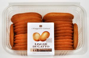 Viaggiator Goloso (marchio supermercati Unes), Lingue di gatto. Ingredienti: Farina di frumento, burro (latte), zucchero, albume d’uovo, aromi |