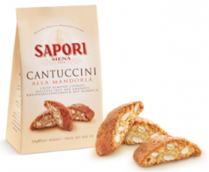 Sapori di Siena: Cantuccini alla mandorla. Ingredienti: farina di frumento, zucchero, mandorle 20%, tuorlo d’uovo, uova, latte intero, burro, miele, agenti lievitanti: pirofosfato acido di sodio- carbonato acido di sodio, sale, aromi. Contiene frutta a guscio. Può contenere soia. |
