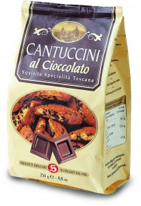 Scapigliati, Cantuccini al cioccolato. Ingredienti: Farina di frumento, zucchero, cioccolato fondente 22% (zucchero, pasta di cacao, burro di cacao, emulsionante: lecitina di soia, estratto naturale di vaniglia), uova, tuorli d’uovo, burro, miele, sale, polvere lievitante: bicarbonato di ammonio, aromi naturali. |