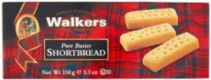 Walkers, Shortbread. Ingredienti: Ingredienti: Farina di frumento (farina di frumento, carbonato di calcio, ferro, niacina, tiamina), Burro (latte) (32%), Zucchero, Sale. Può contenere frutta a guscio |