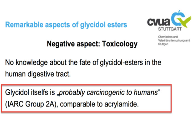 Alcune ricerche condotte in Germania dall’Autorità tedesca e dall’istituto CVUA che, dopo avere misurato – tra il 2007 e il 2008 – i livelli di contaminazione da agenti cancerogeni in 400 alimenti, avevano a sua volta confermato i profili di rischio dell’olio di palma ovunque impiegato. Dalla Germania, primo paese in Europa per la produzione di alimenti, il leader mondiale Nestlé aveva tra l’altro mandato in quegli anni un suo dirigente, Gunther Fricke, a presiedere il Gruppo di Lavoro “Food Safety Management” presso la Confederazione delle Industrie Agro-Alimentari in Europa (CIAA, ora Food Drink Europe).
