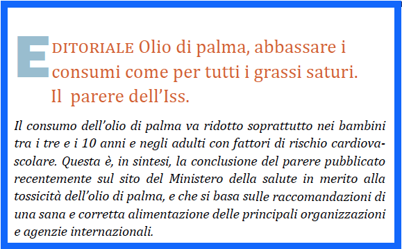 “Olio di Palma: abbassare i consumi COME PER TUTTI I GRASSI SATURI”.