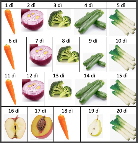 Secondo le risultanze del progetto europeo HabEat (ne abbiamo parlato nell’articolo Come far amare frutta e verdura ai bambini?), all’inizio dell’alimentazione complementare (svezzamento) è importante offrire quotidianamente al bambino una singola verdura, variandone il tipo ogni giorno per 5 giorni e poi ripetendo il ciclo. Dopo circa due settimane dedicate esclusivamente alle verdure, si passa all’introduzione della frutta e, successivamente, a quella degli altri alimenti (Figura 1).