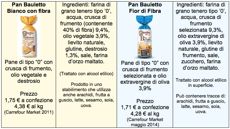 Pan Bauletto Fior di Fibra è il nuovo pane in cassetta firmato Mulino Bianco, e si può considerare l’evoluzione, del precedente Pan Bauletto Bianco con Fibra lanciato a maggio 2011 che Il Fatto Alimentare aveva recensito. In questo caso, anche se il confronto nutrizionale non mette in evidenza differenze sostanziali (vedi tabelle sotto), si tratta di un vero e proprio miglioramento del prodotto, con un rinnovamento della ricetta, della confezione e della dicitura.