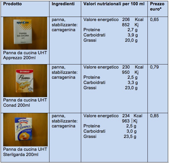 Il Fatto Alimentare ha confrontato le tre confezioni da 200 ml di panna UHT firmate: Sterilgarda, Conad e Apprezzo,  acquistate in un ipermercato Leclerc-Conad, individuando poche differenze.