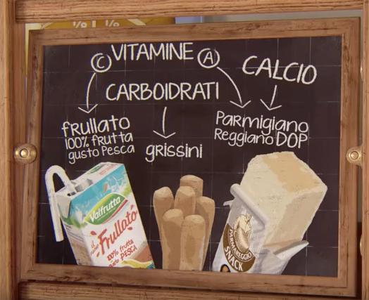 “L’ABC della Merenda” di Parmareggio non è una vera novità. Lo snack è stato lanciato un anno e mezzo fa ma ancora oggi viene presentato come “nuovo” e proposto al prezzo di lancio di 1 euro. Lo spuntino è indirizzato principalmente ai bambini dai 6 ai 10 anni. Si tratta di un prodotto composto da tre alimenti e declinato in due varietà. La confezione contiene una porzione di grissini, un formaggio (formaggino o Parmigiano) e un frullato di frutta Valfrutta.