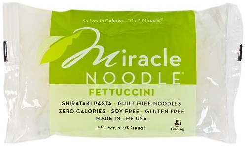 In versione originale gli shirataki – il nome significa “cascata bianca” – sono sottilissimi tagliolini biancastri praticamente insapori. In genere nei negozi di alimenti etnici si trovano diverse marche di questi spaghettini tutte con un bassissimo apporto calorico. La Miracle Noodle ha lavorato gli ingredienti fino a ottenere anche una sorta di “riso” e dei “fettuccini”. Tutte e tre le versioni sono confezionate in una soluzione acquosa con l’aggiunta di idrossido di calcio (E226) come regolatore di acidità. Le istruzioni suggeriscono di risciacquarli prima del consumo, per eliminare l’odore e di bollirli per due minuti prima di ripassarli in padella con il condimento scelto.