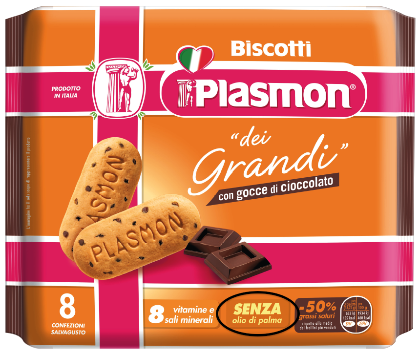 Un lettore ci ha segnalato le presenza di olio di palma “sostenibile” tra gli ingredienti del biscottino granulato Plasmon, un preparato al gusto di biscotto in forma granulare perfettamente solubile nel latte, adatto per bambini dal quarto mese. La notizia è poco in sintonia con la scelta presa qualche mese fa da Plasmon, annunciando la sostituzione dell’olio di palma con olio di oliva e girasole, nei biscotti dedicati ai bimbi dai sei mesi in su.