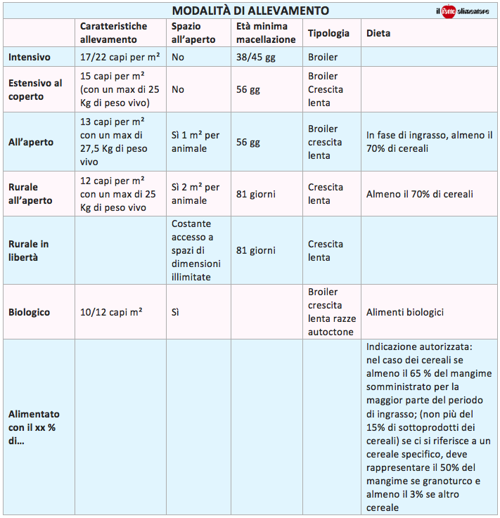 Queste immagini suggestive non corrispondono alla tipologia di allevamento tipica dei polli da carne, che possono crescere in capannoni chiusi o aperto seguendo varie modalità (vedi tabella in basso). L’unica cosa certa è che non vengono allevati in batteria (sistema consentito sino al 2012 solo per le galline ovaiole, ora sostituito dalle “gabbie arricchite” che risultano più grandi e meno scomode).