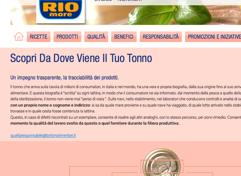 Bolton Alimentari, in qualità di proprietaria del marchio Rio Mare, tiene a spiegare come avviene la comunicazione relativa alla tracciabilità del prodotto, un aspetto al quale prestiamo particolare attenzione e nel quale investiamo importanti risorse.