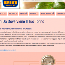 trasparente con i consumatori, per questo ogni confezione di tonno Rio Mare ha una storia totalmente tracciata: la specie di tonno utilizzata (con il nome scientifico) è presente sulle confezioni e, da quest’anno, verrà inserito anche l’oceano di provenienza, mentre tutte le informazioni e i dettagli legati alla filiera sono completamente accessibili attraverso i siti internet.