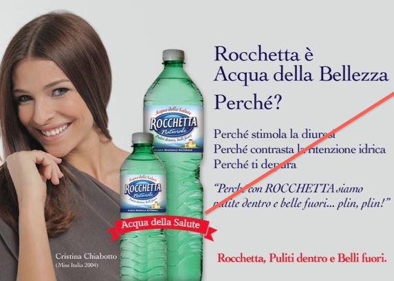 Nonostante la condanna decisa nel marzo 2013 dal Comitato di controllo dell’Istituto di autodisciplina pubblicitaria e la censura del 2004, Rocchetta continua a proporre messaggi pubblicitari ingannevoli. Il motivo è sempre lo stesso: l’abbinamento dell’acqua minerale a frasi e immagini che lasciano ipotizzare vantaggi per la salute.