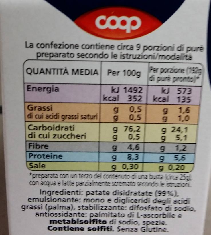 Questa mattina dovevo acquistare una confezione di purè in fiocchi e nell’elenco degli ingredienti del prodotto Coop ho notato la dicitura “mono e digliceridi degli acidi grassi (palma)” (vedi foto sotto)… Ho fatto un confronto con la composizione di altri preparati analoghi della Knorr e di Pfanni e ho notato che i “mono e digliceridi degli acidi grassi” ci sono sempre ma non ne viene specificata l’origine.