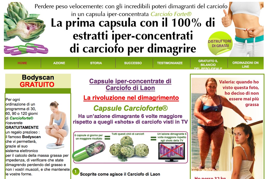 A dispetto di queste rigidità normative, paradossalmente si continua ad assistere su web, carta stampata e tv, a palesi violazioni di legge come da ultimo quella di Carcioforte, che reclama “un’azione dimagrante 6 volte maggiore di quella degli ‘shots’ di carciofo visti in tv” (le bevande pubblicizzate sul piccolo schermo), mostrando le incredibili foto di donne corpulente trasformate in Barbie dal presunto miracolo del carciofo di Laon.