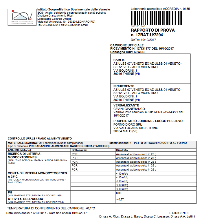Rientra l’allerta Listeria per l’arrosto di fesa di tacchino a marchio Liberamente Casa Modena e Capitelli, prodotto da Forno d’Oro. Le analisi svolte dall’Istituto zooprofilattico sperimentale delle Venezie e dal Servizio veterinario di igiene degli alimenti dell’ULSS7 Pedemontana non hanno riscontrato la presenza del batterio nel lotto coinvolto da due provvedimenti separati, pubblicati dal Ministero della salute il 6 e il 12 ottobre. La revoca è stata confermata anche dal Ministero della salute, che ha pubblicato l’avviso della cancellazione del richiamo sul portale dedicato ai ritiri alimentari.