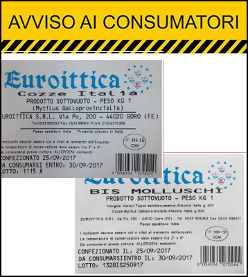 Il richiamo riguarda esclusivamente il lotto numero 1115A di cozze con codice EAN 8054934070020, e il lotto 132BIS250917 di bis molluschi (cozze e vongole veraci) con codice EAN 8054934070044. Entrambi i prodotti sono venduti in confezioni sottovuoto da 1 kg, preparate il 25/09/2017 con scadenza al 30/09/2017.