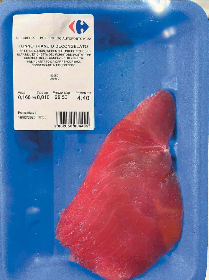 Carrefour rende noto che il prodotto è stato venduto nei banchi pescheria e preincartato dal punto vendita dal 12/02/2026 al 19/02/2026. Per ulteriori informazioni è possibile contattare il servizio clienti della catena al numero verde 800 650650.