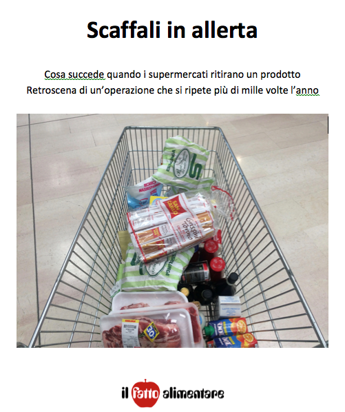 Per capire come funziona il servizio di allerta alimentare e come viene effettuato il ritiro dei prodotti dai punti vendita leggi il libro “Scaffali in allerta” edito da Il Fatto Alimentare. È l’unico testo pubblicato in Italia che rivela i segreti e le criticità di un sistema che funziona poco e male. Ogni anno in Italia vengono ritirati dagli scaffali dei punti vendita almeno 1.000 prodotti alimentari. Nel 10-20% dei casi si tratta di prodotti che possono nuocere alla salute dei consumatori, e per questo scatta l’allerta. La questione riguarda grandi aziende come Barilla, Mars…, catene di supermercati che commercializzano migliaia di prodotti con i loro marchi (Esselunga, Coop, Carrefour, Auchan, Conad, Lidl, Eurospin…), e anche piccole e medie imprese. Il libro di 169 pagine racconta 15 casi di richiami che hanno fatto scalpore. Fai una donazione e ricevi il libro in omaggio.
