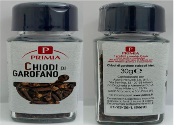 I supermercati Tigros, Basko e Iperal hanno richiamato un lotto di chiodi di garofano a marchio Primia (aggiornamento del 15/09/2025). Il motivo indicato sull’avviso di richiamo è la presenza di un pesticida oltre i limiti di legge, senza specificare quale. Il prodotto in questione è venduto in vasetti di vetro da 30 grammi, con il numero di lotto L15069C e il termine minimo di conservazione (TMC) 31/03/2028.