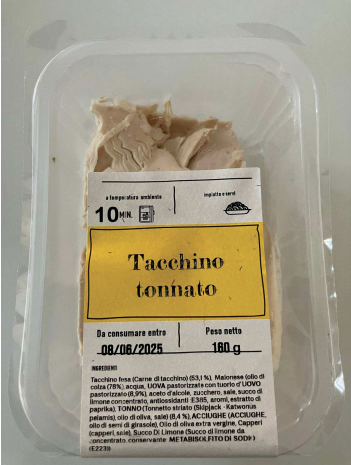 L’azienda Soulkitchen Srl ha prodotto il tacchino tonnato richiamato. Lo stabilimento di produzione si trova in via Marco Fabio Quintiliano 25, a Milano (marchio di identificazione IT R764M).