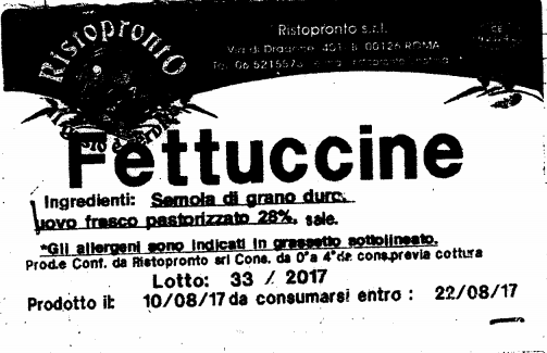 Il richiamo interessa esclusivamente il lotto di fettuccine numero 33/2017, vendute in confezioni da 2 kg da consumarsi entro il 22/08/2017.