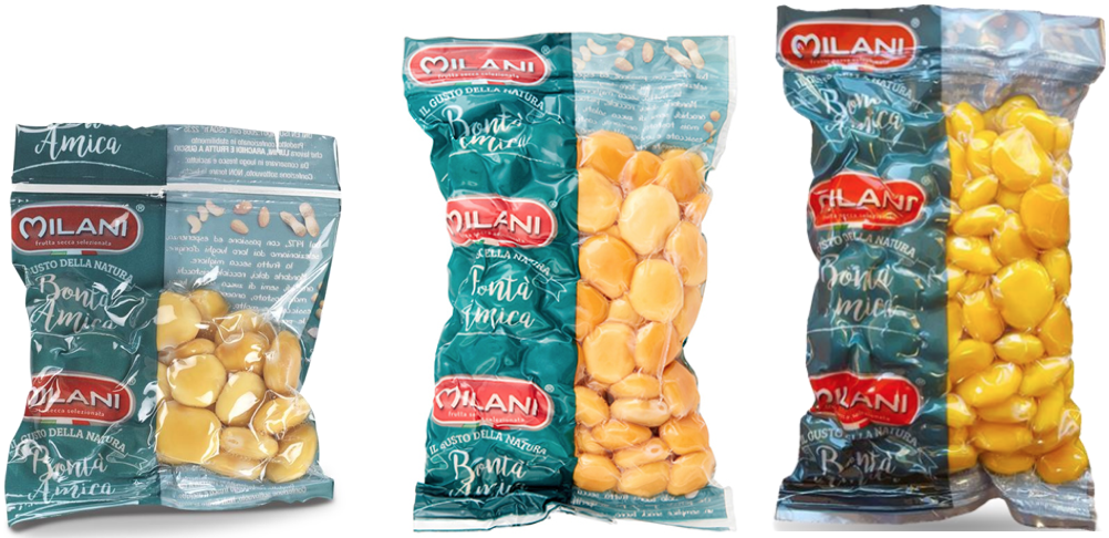 - Lupini cotti e salati in buste sottovuoto da 200 grammi, appartenente ai lotti C5216 con il TMC 04/08/2026, E5195 con il TMC 14/07/2026, F5086 con il TMC 27/03/2026, F5188 con il TMC 07/07/2026, I5258 con il TMC 08/09/2026, J5142 con il TMC 22/05/2026, e K5258 con il TMC 15/09/2026;