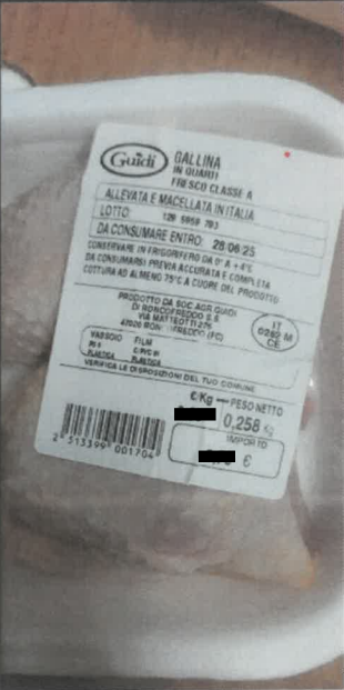 Il Ministero della Salute ha segnalato il richiamo da parte del produttore di un lotto di gallina in quarti a marchio Guidi. Il motivo indicato nell’avviso di richiamo è la presenza della data di scadenza sbagliata: in etichetta si legge la data errata 28/06/2025, invece di quella corretta 19/05/2025, purtroppo già superata da tre giorni nel momento della pubblicazione da parte del Ministero, nel pomeriggio del 22/05/2025 (per di più nella categoria “revoche” del portale). Il prodotto in questione è venduto in vaschette di peso variabile, con il numero di lotto 129 5959793 e la data di scadenza errata 28/06/2025.