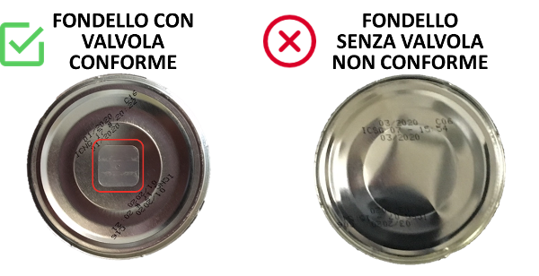 Le confezioni richiamate sono facilmente riconoscibili, perché prive della valvola di sfiato sul fondo, dove può essere presente un anomalo rigonfiamento del barattolo (vedi foto sotto). Sul fondo della confezione si può trovare anche il termine minimo di conservazione del caffè, che rimane comunque sicuro per la salute dei consumatori.