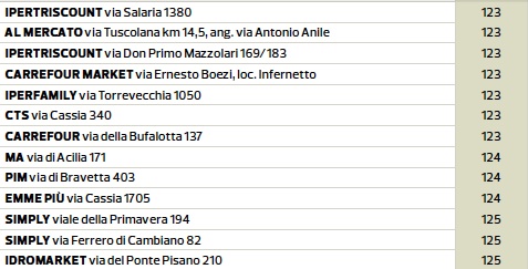 Nella tabella è possibile controllare il posizionamento dei supermercati presi in esame nell’inchiesta (*).